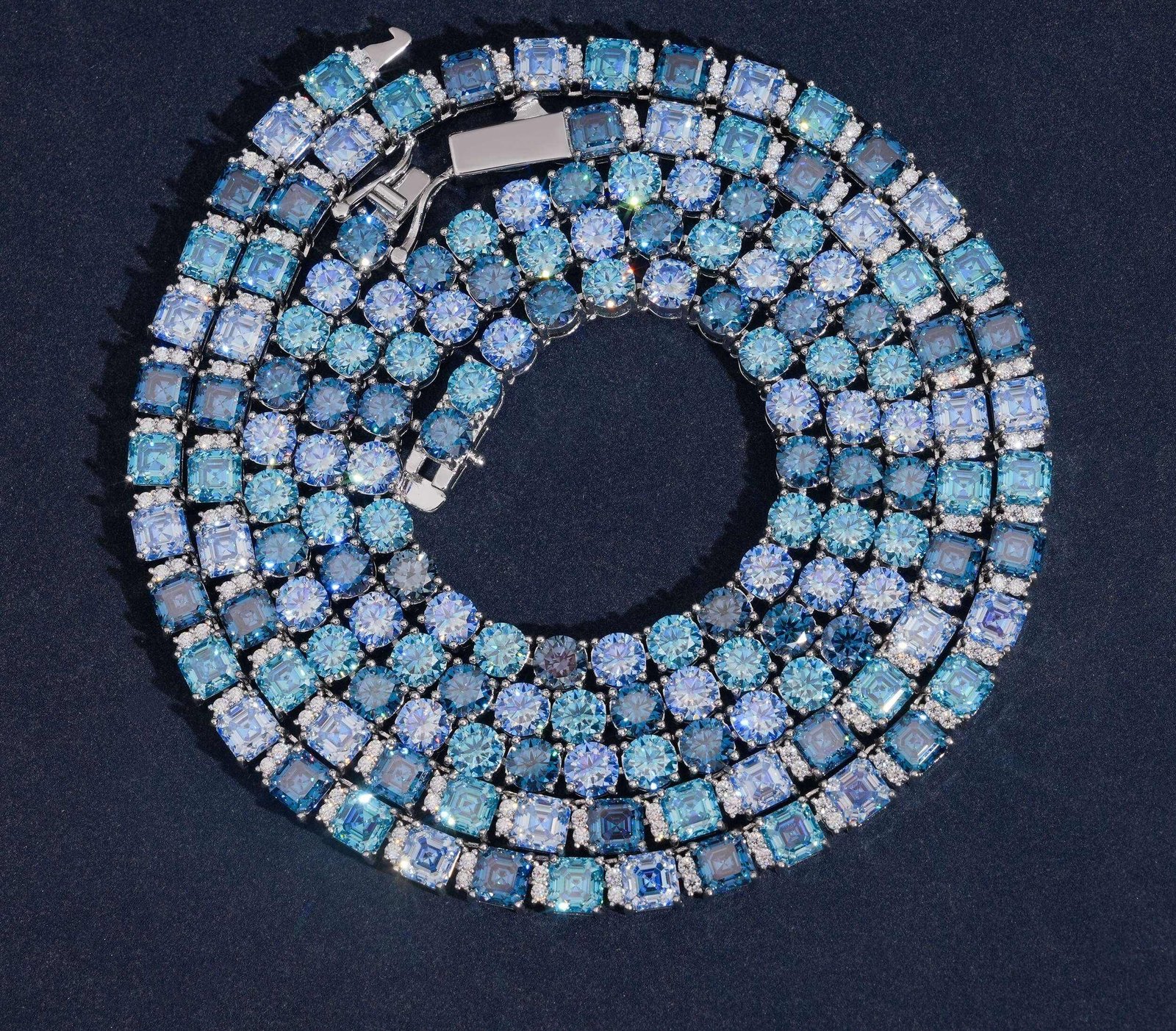 5MM Blue Moissanite Bracelet ( ASSCHER CUT )